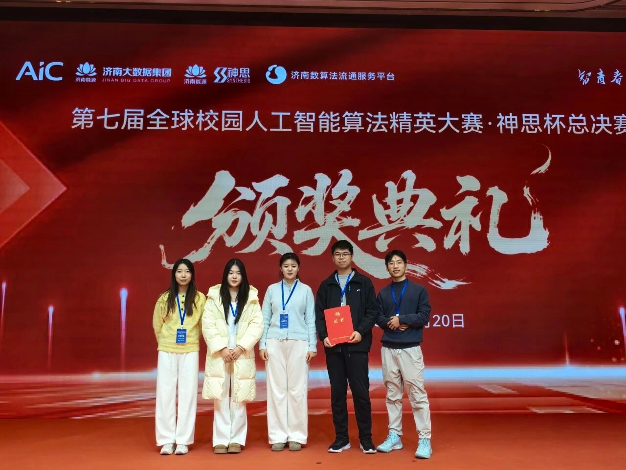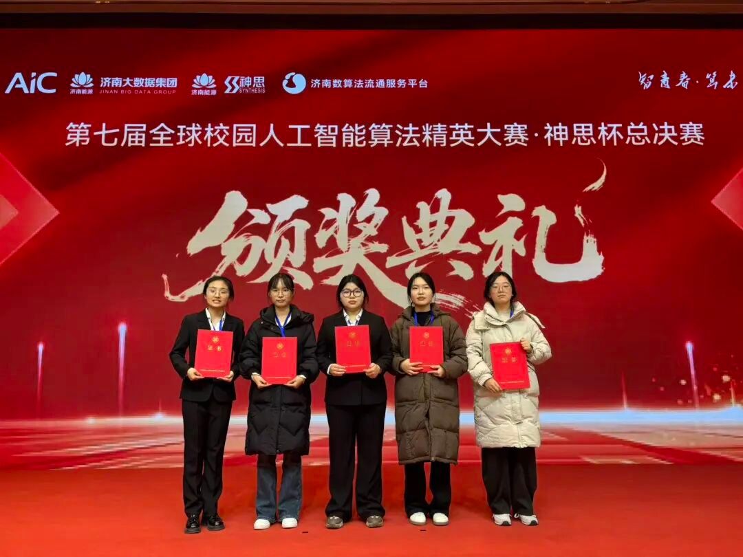 12月20日,“智青春 算未来”第七届全球校园人工智能算法精英大赛·神思杯总决赛暨颁奖典礼在山东济南隆重举行。我校数学与统计学院积极组织学生参赛,最终荣获国家级一等奖1项、三等奖1项,是我省唯一获得国家级奖项的单位。