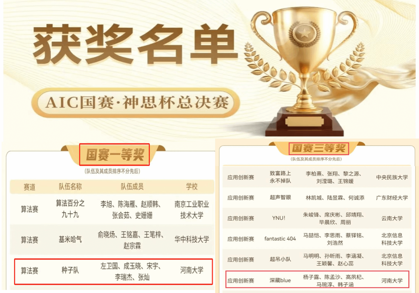 此次成绩的取得不仅是参赛学生与指导教师辛勤耕耘的成果,更是数学与统计学院持续推进产学研交叉融合、强化创新人才培养的鲜活例证。后续,学院将继续依托河南省人工智能理论及算法工程研究中心等省级科研机构和校企研发中心,为学生搭建理论与实践深度融合的创新实践平台,鼓励学生通过参加高水平学科竞赛拓宽学术视野、增强实践能力,培养更多具备扎实理论根基和卓越创新能力的复合型人才。