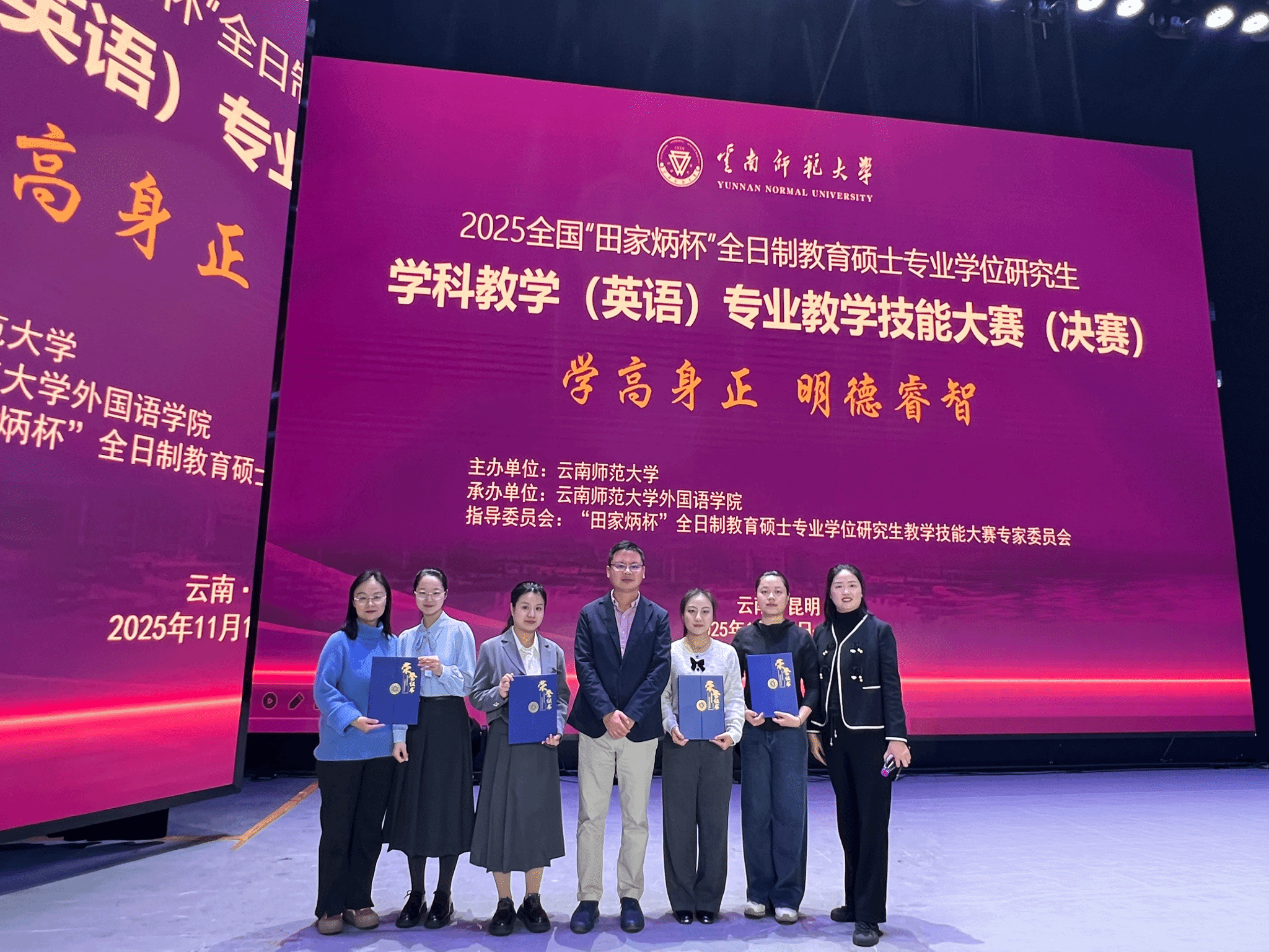 2025年全国“田家炳杯”全日制教育硕士专业学位研究生学科教学(英语)专业教学技能大赛决赛于11月15日至16日在云南师范大学成功举办。作为面向全国教育硕士研究生的高层次专业赛事,“田家炳杯”全国教学技能大赛以其权威性、规范性与高难度,成为检验职前教师综合素养的重要平台。本届大赛汇聚了来自全国100所高校的264名优秀选手,最终评选出一等奖26名,二等奖53名,三等奖107名,优秀教学设计奖66名。